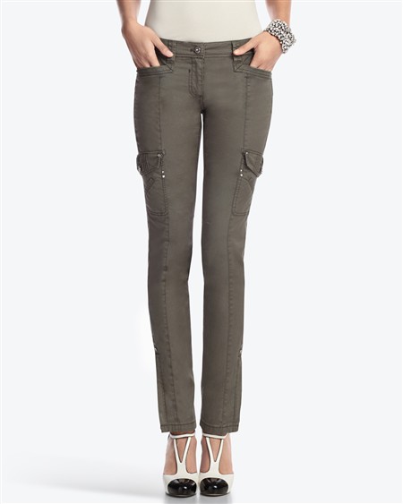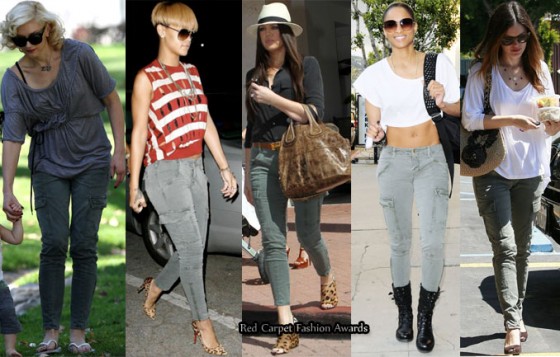 It’s highly likely that I jumped on the skinny cargo bandwagon because I’m working on a bunch of celebrity fashion trend stories for the Chronicle. (That’s my excuse, at least, for the growing stack of Tinsel Town rags that have piled up next to my bed.) After spotting J Brand’s $230 Houlihan skinnies on everyone from Rihanna to Gwen, I was determined to find a comparably cute pair that wouldn’t break the bank.