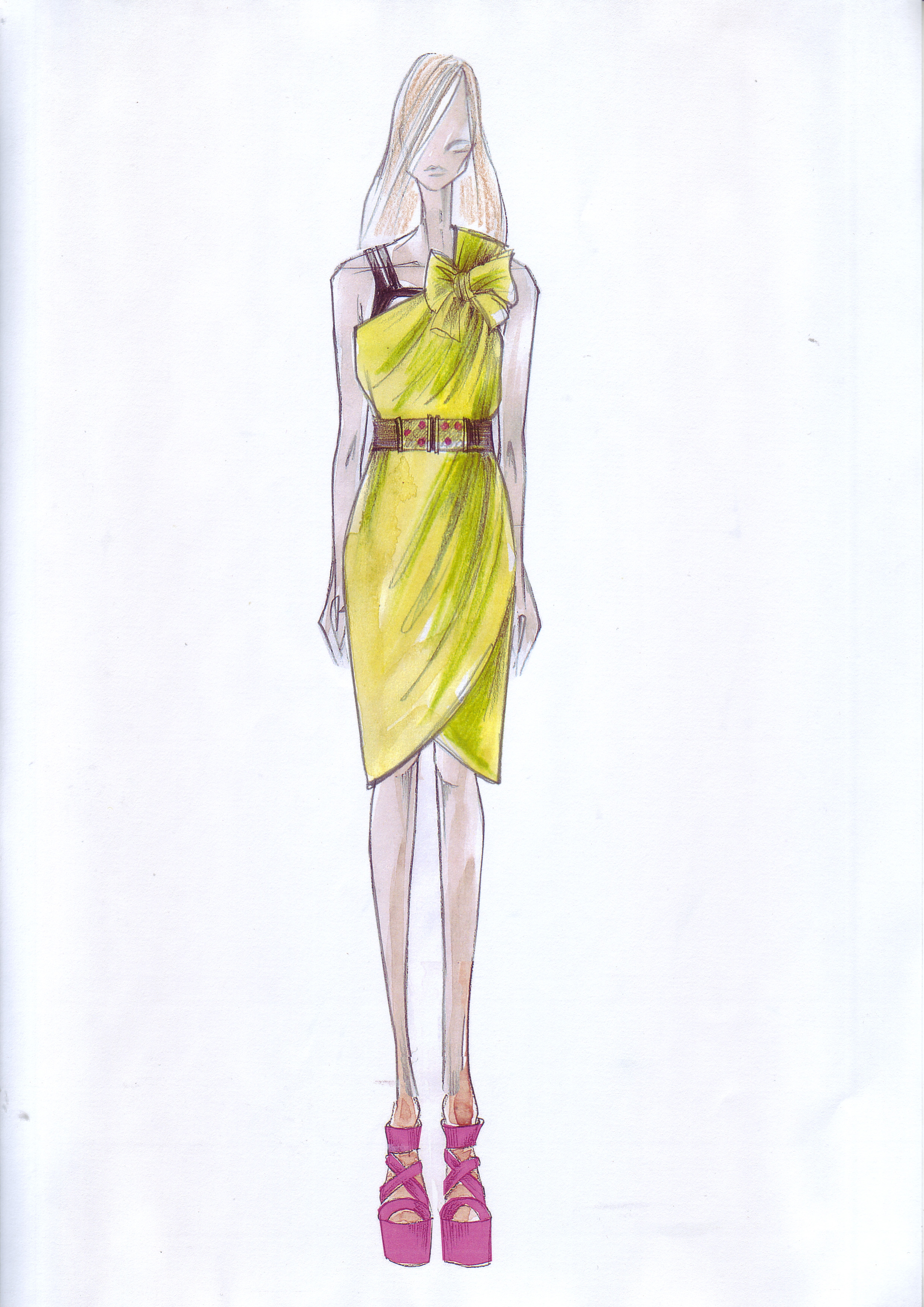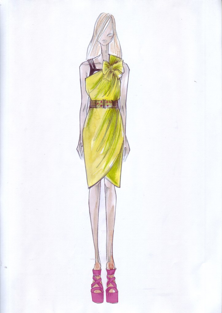 So far, I’ve gotten a preview of a couple sketches and pre-launch press images from the women’s wear collection, which looks to be a mix of playful cocktail sheaths that can go from day to night (see above), tops, scarves, leather and suede pieces in bold colors and retro prints, including bright florals.