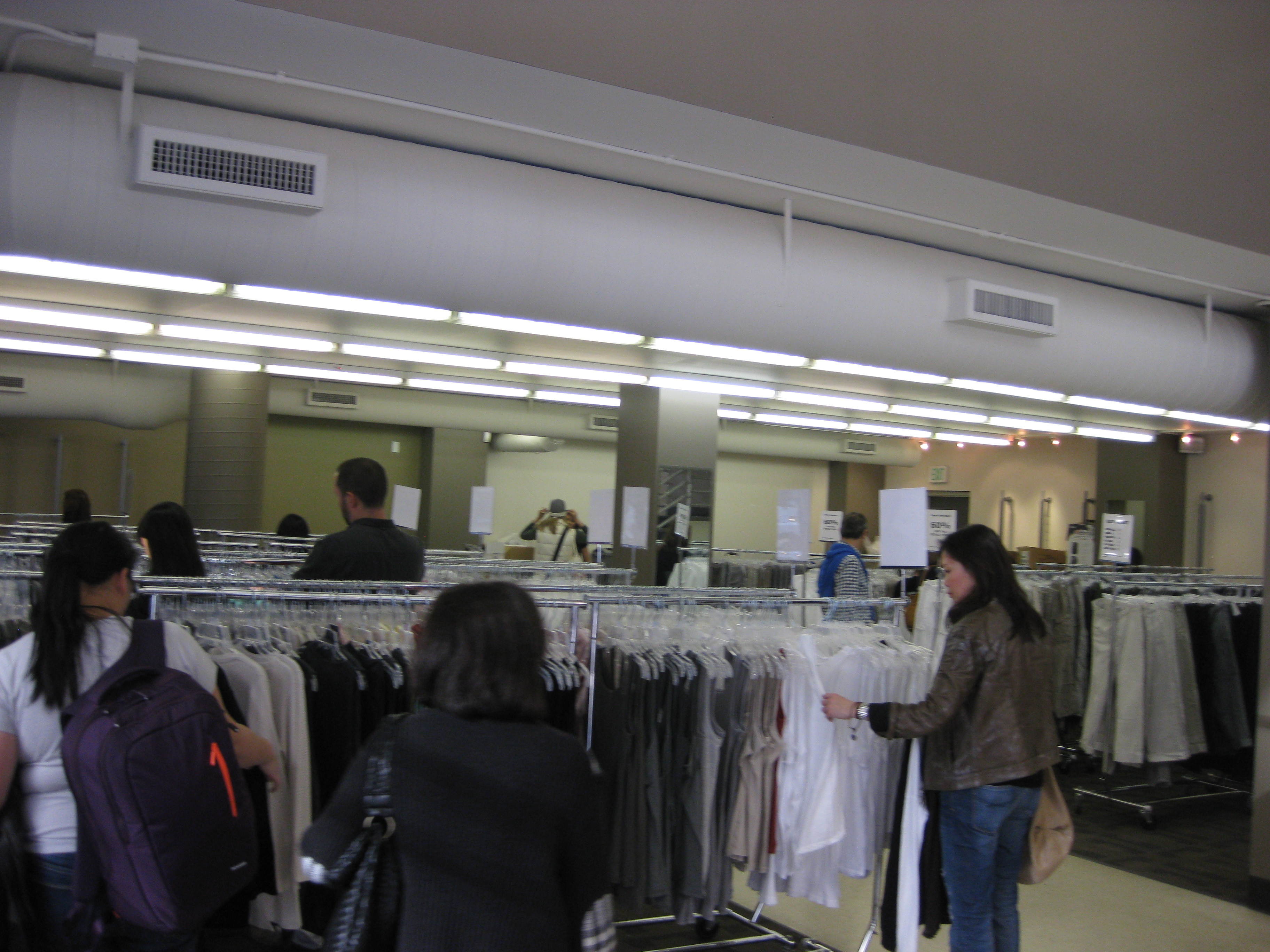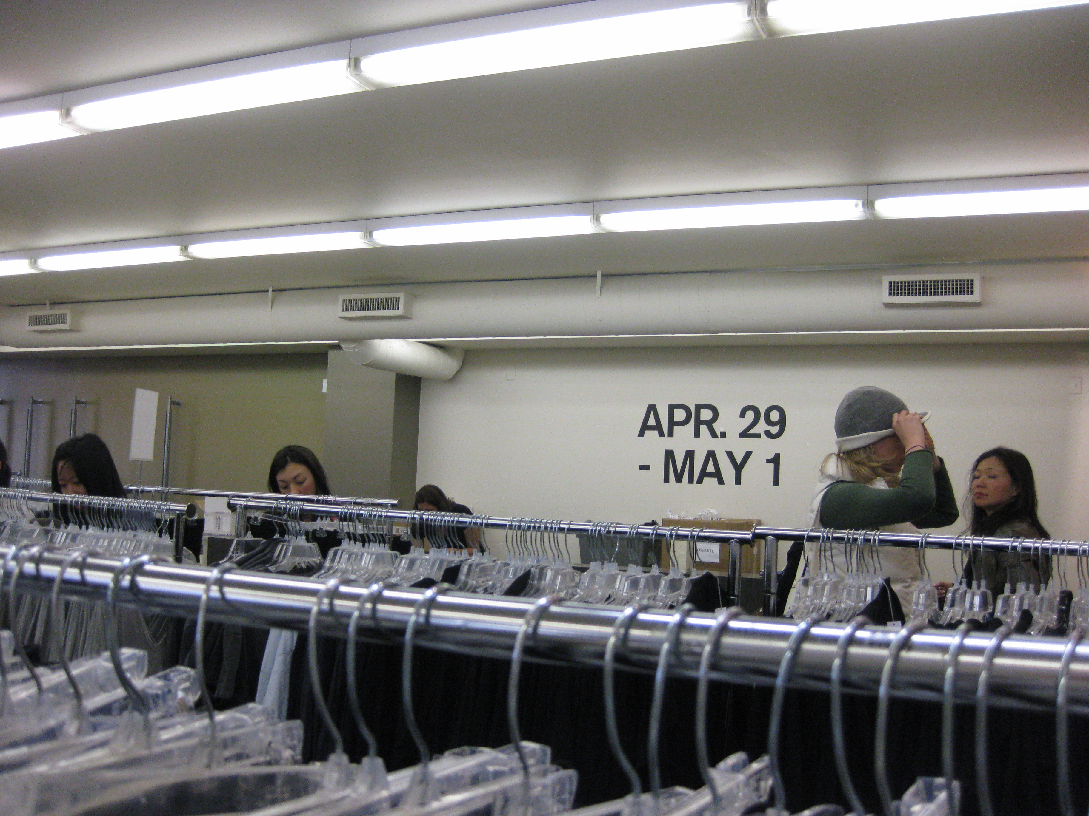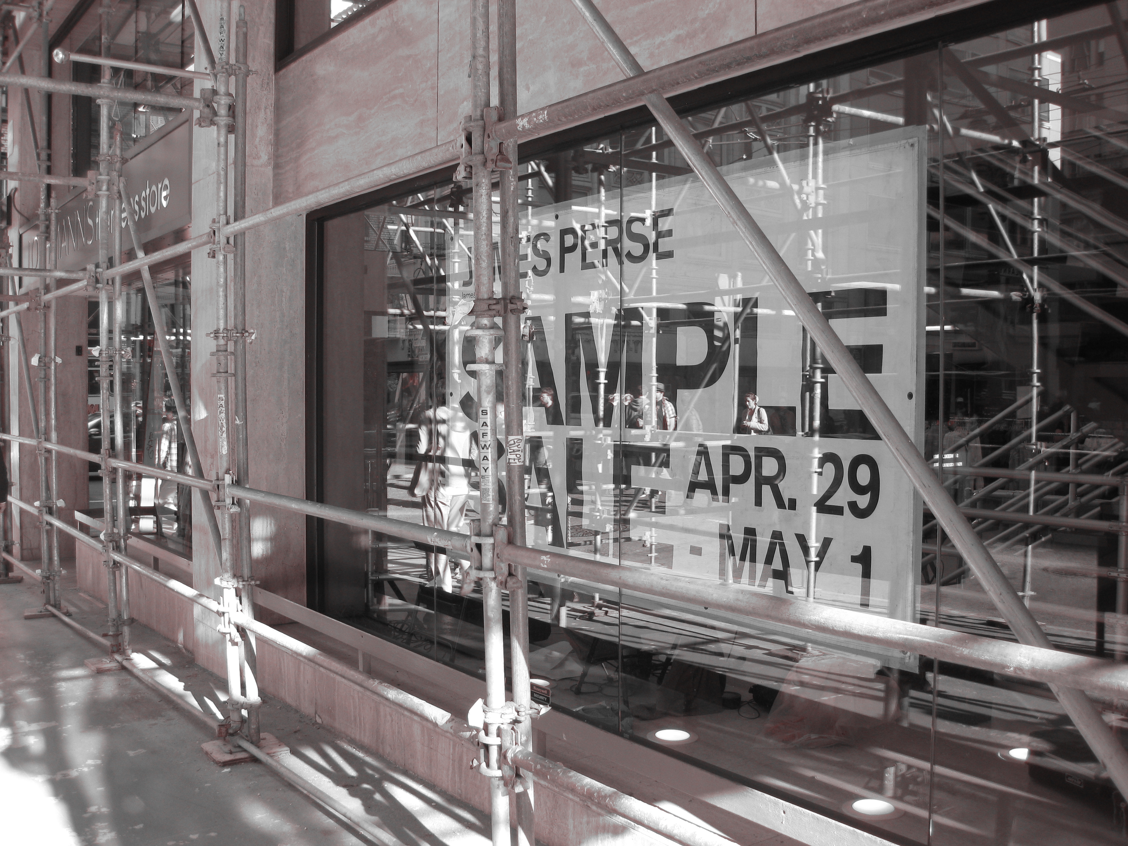 I was walking to BART after work today when this sign stopped me in my tracks. I had missed last year’s cameo appearance by the James Perse sample sale in SoMa  (near Montgomery and Howard) when I happily stumbled upon this new location. Turns out the sale had just popped up in another spot in the Financial District.