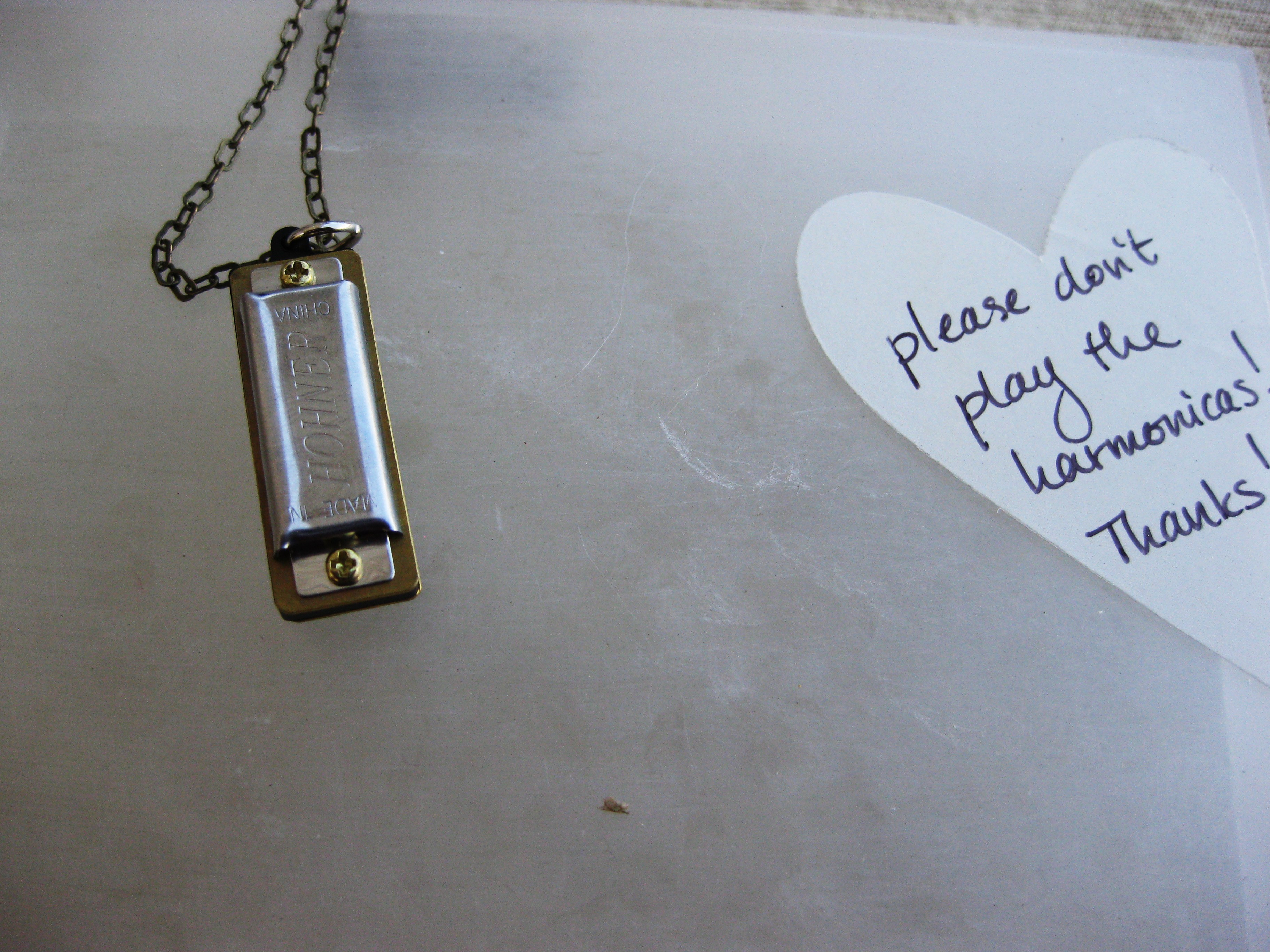You are dressed so festival-appropriate! I love any designer who has to put up a sign warning you not to play the harmonicas.