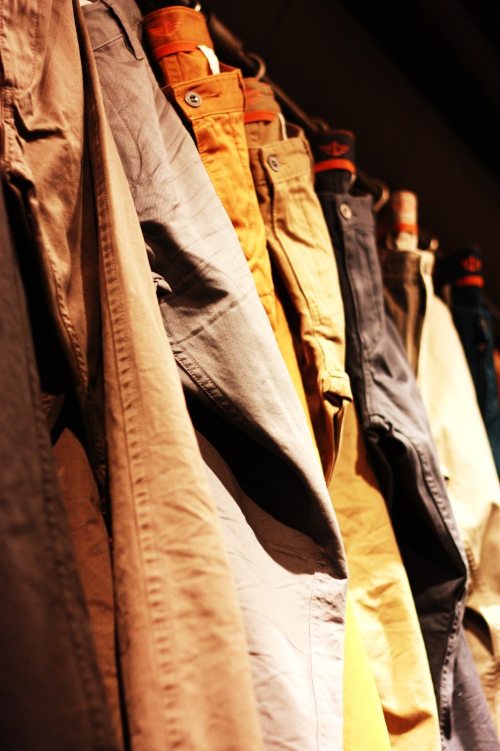 The slim, tapered pant (above) is made from comfy twill, but has all the fashiony details of on-trend denim, such as crinkling, distressing, a vibrant color range, and a modern fit. Price points range from $68 to $119.