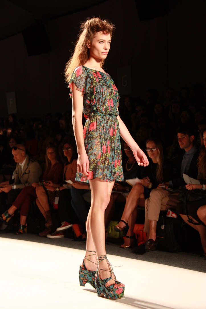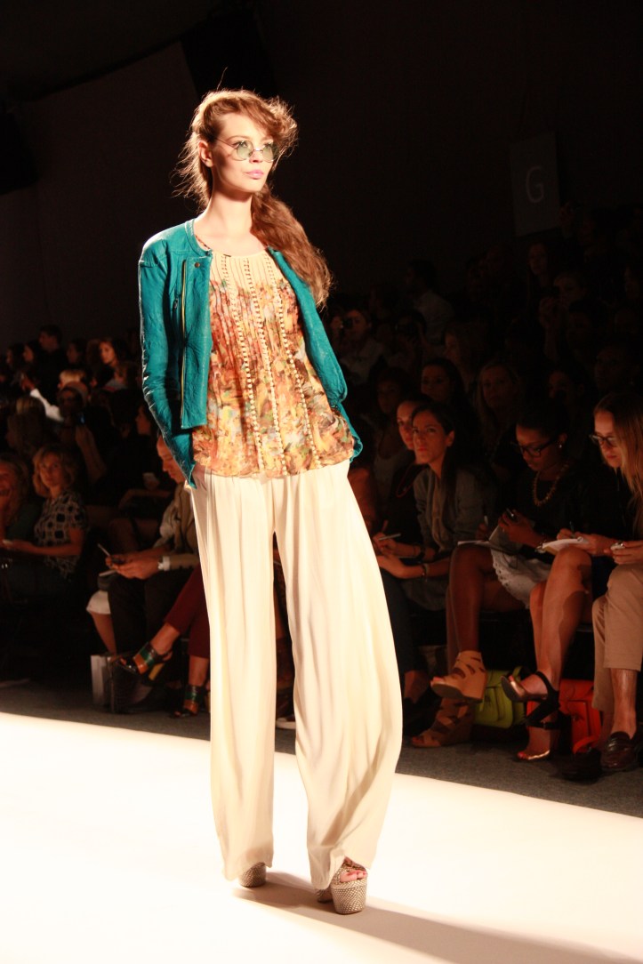 The show itself was bright, energetic, and fun—like her spring/summer 2012 collection. The designer, who traveled to San Francisco as one of the featured designers for last year’s Macy’s Passport, used a nature-inspired palette of corals, mustards, and variations of blue against a neutral canvas of black, beige, and cream. The overall look conveyed modern bohemian with a bit of Victorian edge.
