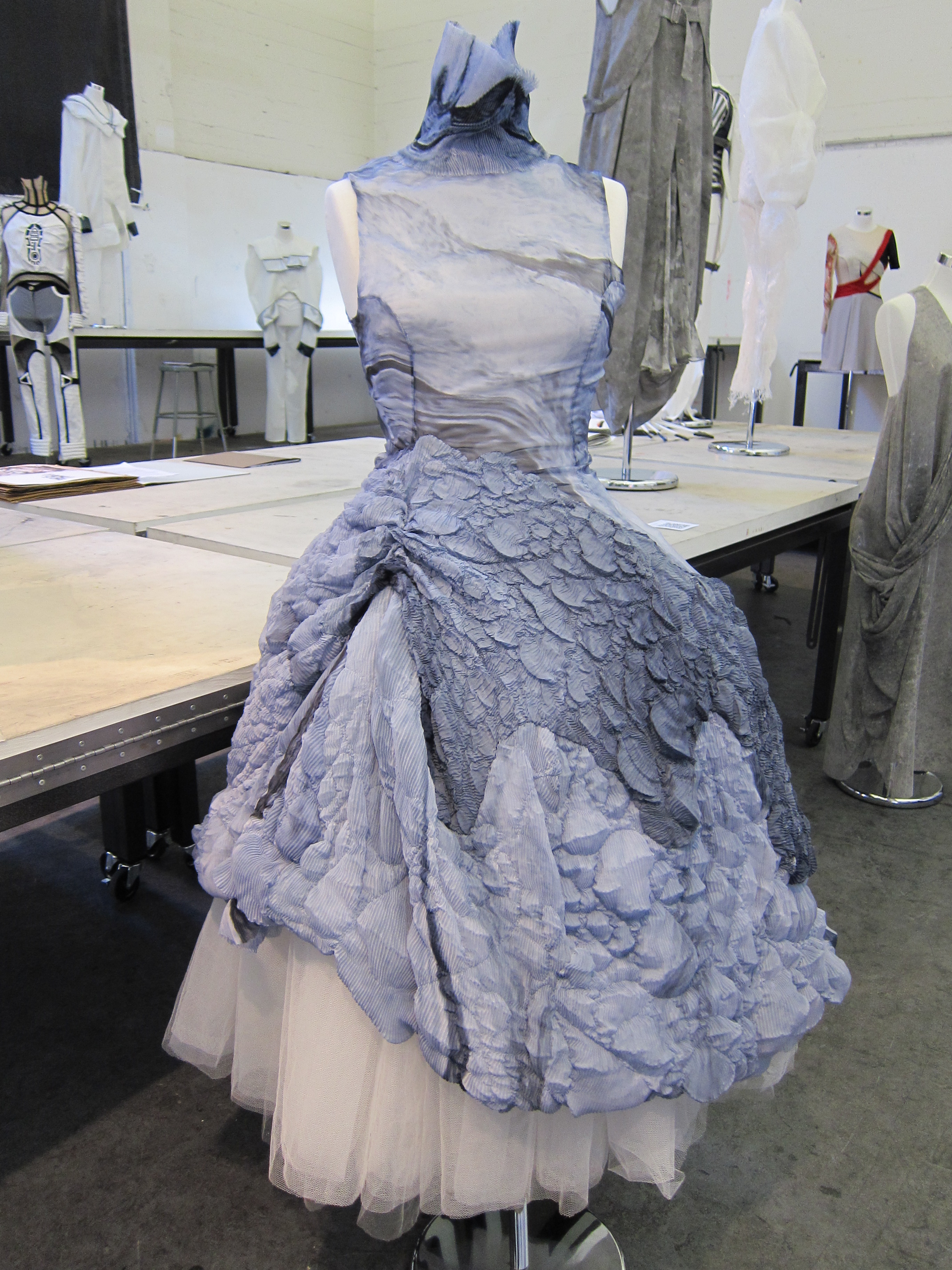 One of the amazing pieces produced during the four-week Arts of Fashion Summer MasterClass in Paris. The women's wear incorporated intricate pleating techniques that students learned from working under master pleat-maker Gerard Lognon.