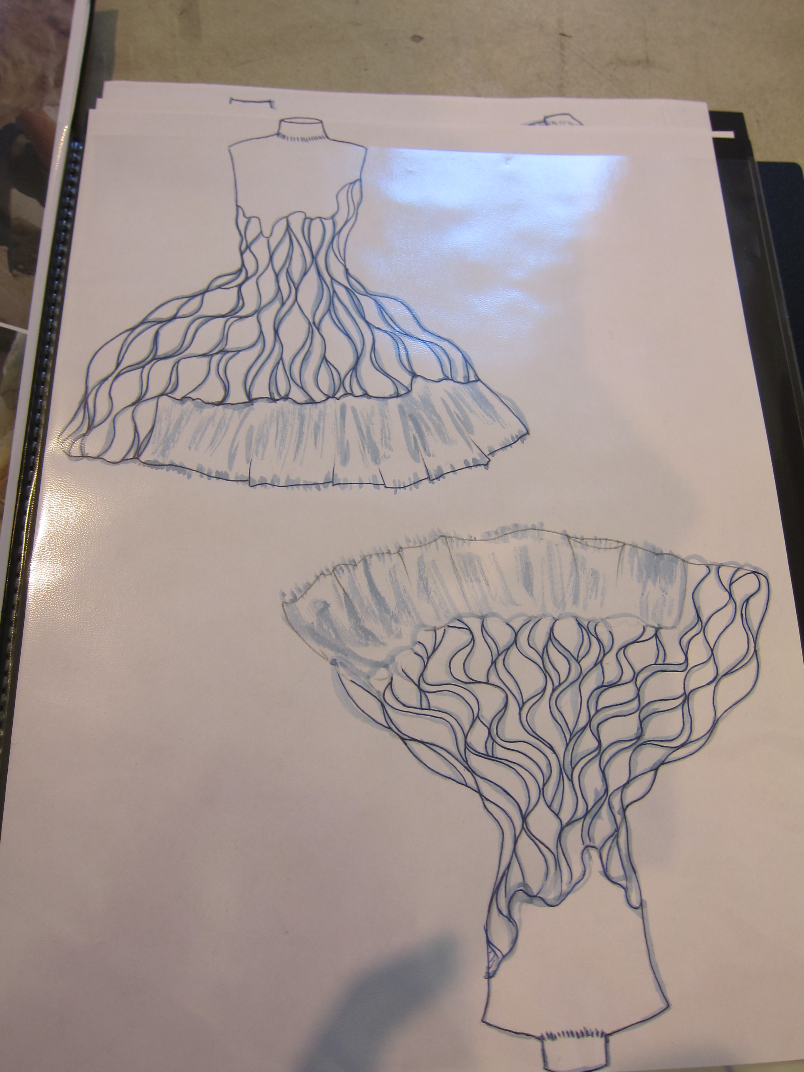 1. These designs are so amazing! I think I just fell in love with that purplish-gray dress with the pleated collar. I would feel like I was wearing a river every time I put it on.