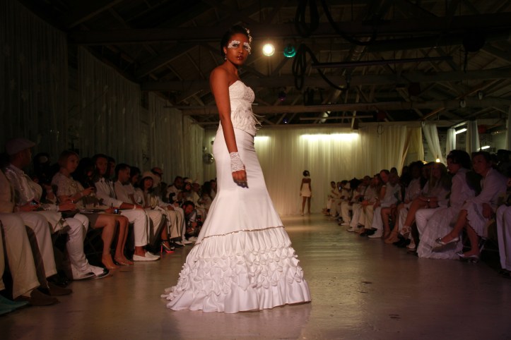 The 30-minute fashion show, produced by a crew of about 100 volunteers, featured six local designers and a range of aesthetics and skill levels. The lineup included veterans Cari Borja, Julie Schindler and Domingo, as well as emerging designers Violetta Vieux, Cana Klebanoff and Herbert Williamson.