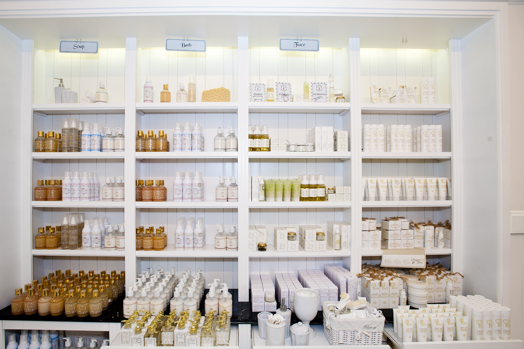 While there are six other scents, the lavender-scented scrub ($24.95) is by far my favorite among the overwhelming assortment of bath and body goods crowding the shelves of the white-themed, shabby chic Marina outpost. (The coconut-verbena comes a close second).